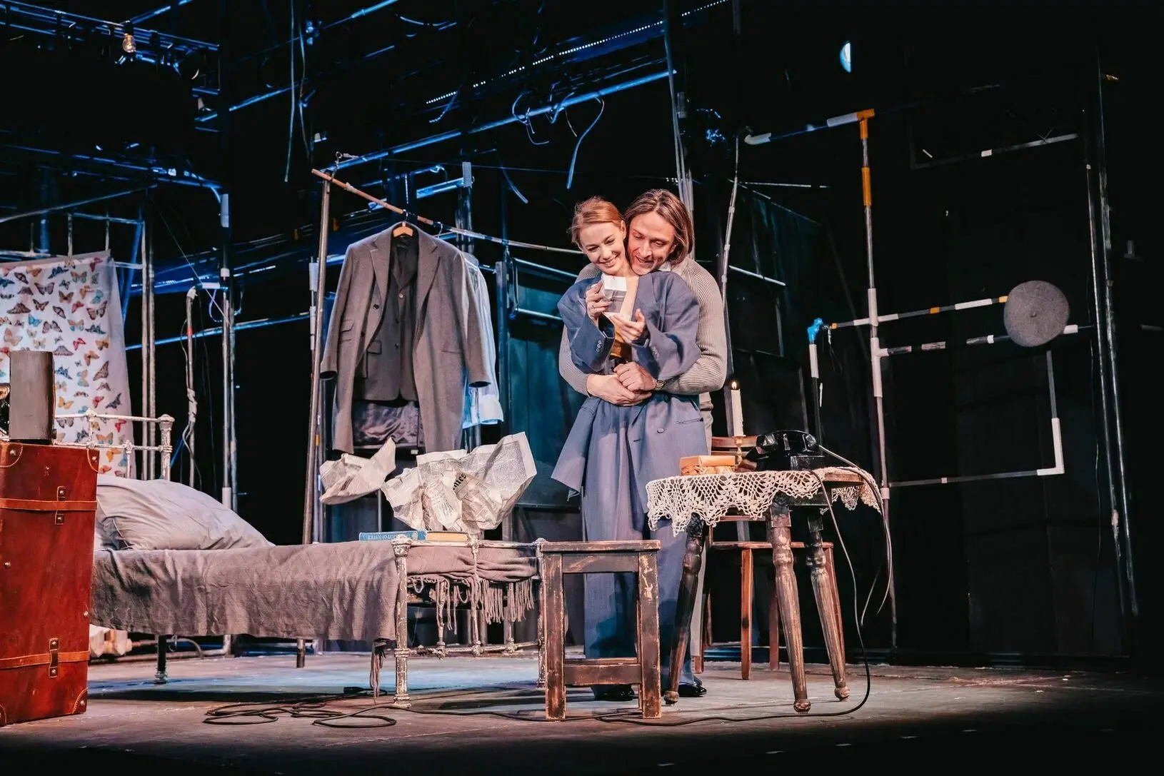 Татьяна: И к разговорному формату, когда на сцену выходят только два артиста, в последнее время не было пристального внимания. А в 2024 году это снова актуально – даже если бы мы просто говорили, сидя на двух стульях. Можно не городить огромные декорации, не сажать оркестр посередине сцены, не делать какие-то виртуозные штуки со светом. Достаточно только человека и того, что происходит у него внутри. Если эти чувства и переживания умело достать и правильно преподнести, то откроется самое важное – то, чем человек живет...